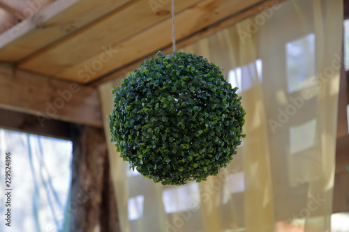 Decorative Ball Of Fresh Green Plants Hanging In The Gazebo