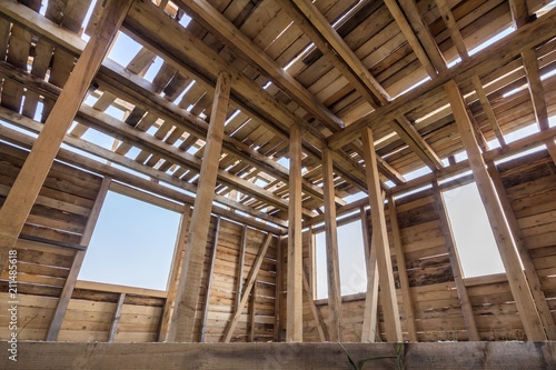 New Wooden House Construction Close Walls Ceiling Frame