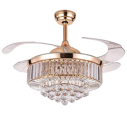 Details About Luxury Rose Gold Led Crystal Stealth Ceiling Fan Light Remote Control Fan Lamp